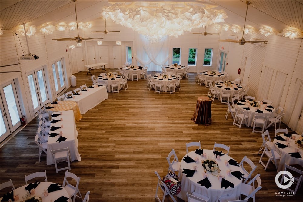 Choose from multiple indoor and outdoor options each with their own unique style and character. The White Hall, lives up to its name with white shiplap style walls with two beautiful chandeliers. The Ballroom, former basketball court, has native Indiana hardwood covering every inch of the floor, walls, and ceiling. The South Wing is perfect for events that flow outside and utilize the grounds of the estate.