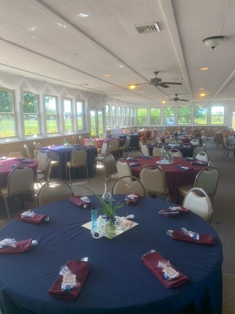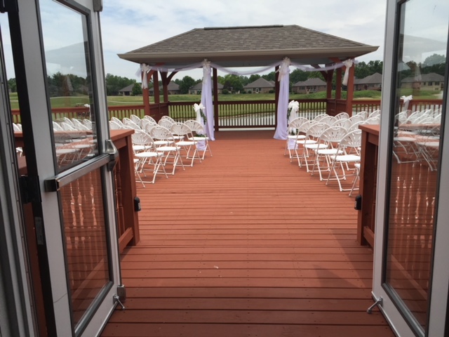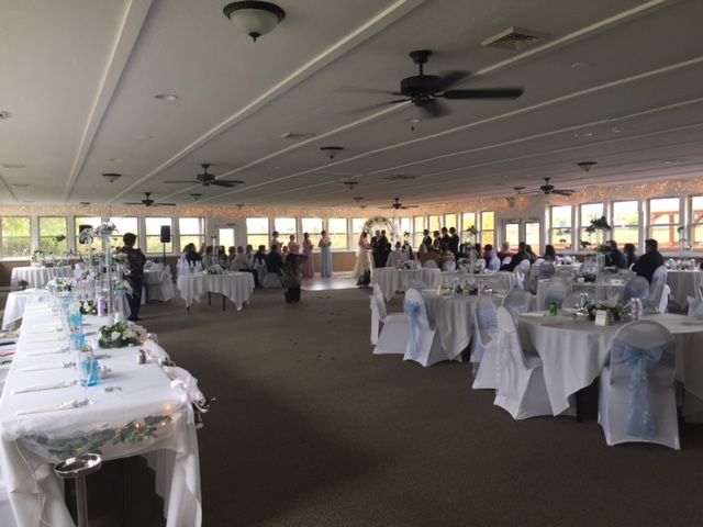 With the Banquet Facility rental the following items are included. We can comfortably seat 260 guests in our Pavilion. The party may decorate the day prior, provided no golf course outings etc. are scheduled. We offer the private upstairs Club Room to the bridal party for dressing and the men’s locker room for the groom and groomsmen. Arrangements with a local hotel for a significant discount for anyone attending an event. We offer special golf rates for anyone booking a wedding. The Lounge is also a great place for intimate weddings as well as other events such as birthday parties, graduation parties, etc.