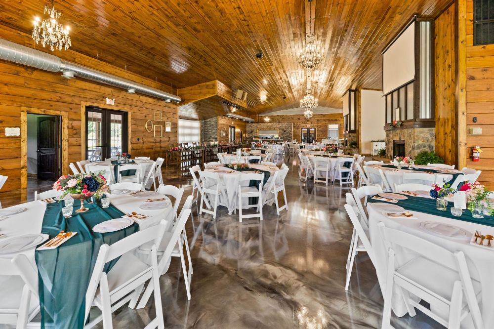 Rustic wedding venue with beautiful landscaping, water views, indoor/outdoor space, open vendor policy, 17 hour rental but can add Fri/Sun to Saturday for discounted pricing, cabin available onsite to rent at additional price.
